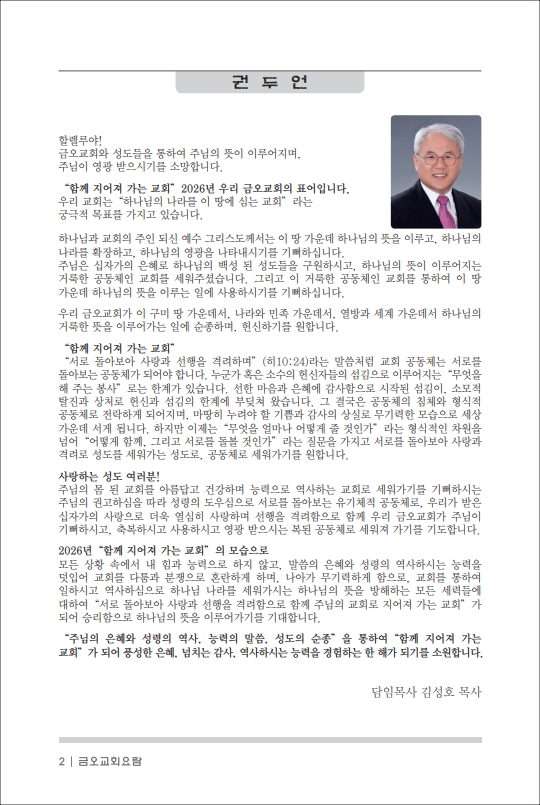 담임목사 인사말