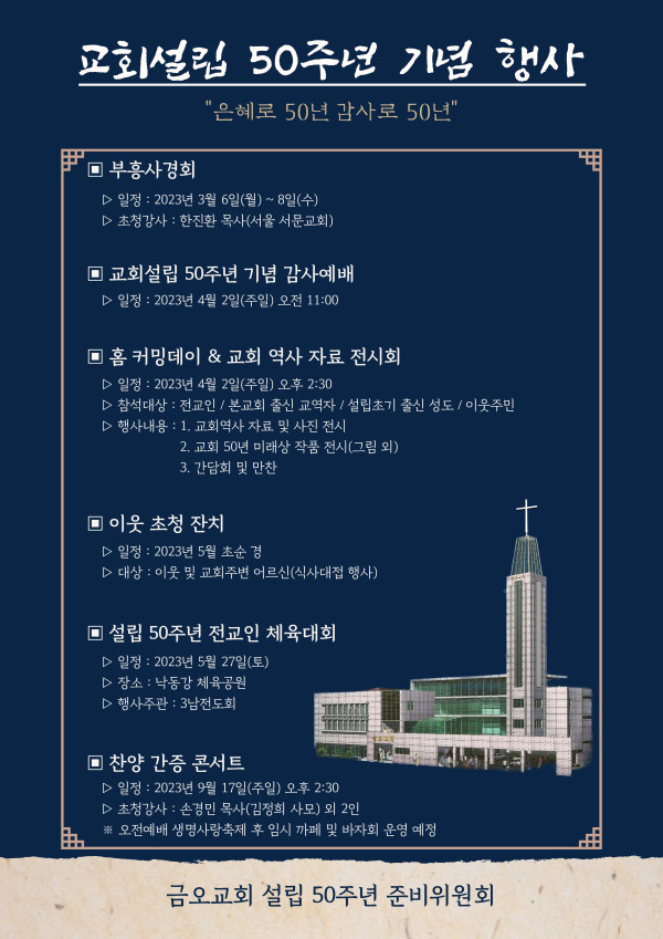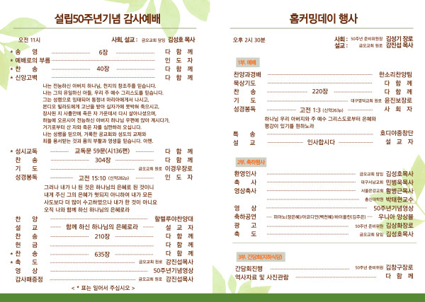 교회설립50주년 감사예배및홈커밍데이 준비
