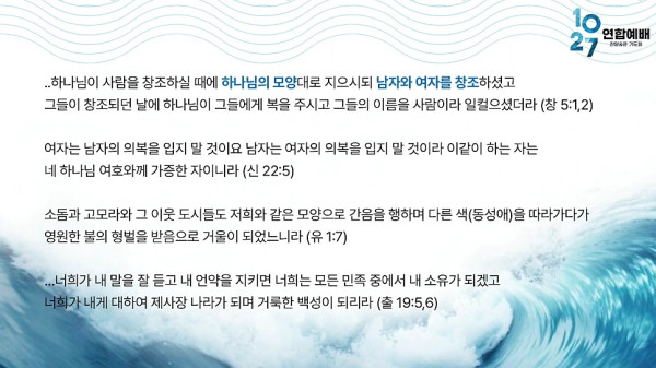 거룩한 방파제 역할이 되는 대한민국이 되길 기도합니다.