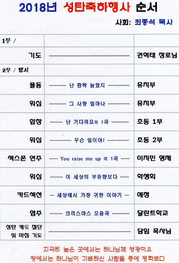 2018"년 성탄발표 순서입니다
