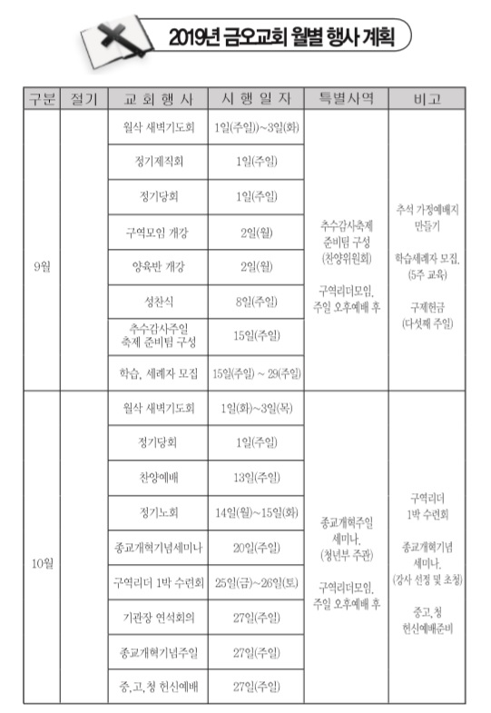 2019년 9~10월 월별 행사 안내입니다